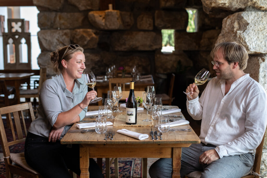 Der schonende Einsatz von Intervention gibt den Trauben größtmöglichen Freiraum zur geschmacklichen Entfaltung. Im Keller wird auf Pumpkraft verzichtet, ohne Zuckerzusatz und chemische Entsäuerung gearbeitet, nur der Einsatz von Reinzuchthefe wirkt unterstützend. Und auch die Tanks hält man lieber klein, aber fein. Für ihren Pinot Noir schlägt ihr Winzerherz höher und auch sonst stecken ganz viel Persönlichkeit, Stil und Idee in ihren Produkten. Regionale Köstlichkeiten kann man im angeschlossenen Restaurant des Weinguts genießen. Genuss ist eben auch harte Arbeit und so suchen Georg und Sem jeden Lieferanten und jedes Produkt mit großer Achtsamkeit aus. Neben der eigenen „Alpen Spirit“-Linie mit Cider und hochwertigen Destillaten ergeben sich durch ihre Offenheit ständig neue Bezüge, ganzheitlichen Weinbau und vorzüglichen Genuss zu verbinden.