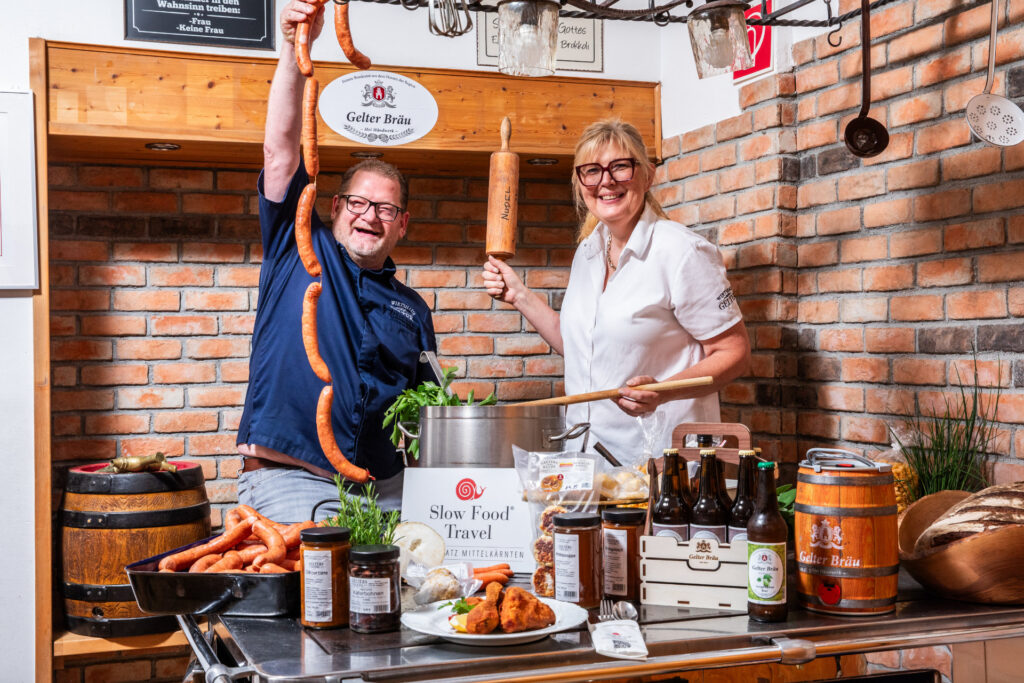 Im Wirtshaus Gelter in Goggerwenig gibt’s bodenständige, ausgezeichnete Wirtshausküche, gscheite Portionen und eine Extraportion Humor. Für das „Ausgezeichnet“ bekamen Gabi und Christian Gelter im Jahr 2014/2015 den Titel „Genusswirt“ verliehen, der auf ganzer Linie ihr regionales Einkaufs- und Produktkonzept bestätigt. Der Gelter wäre aber nicht das Wirthaus Gelter, wenn er nicht Träume hätte und Energie, diese zu verwirklichen. Bier brauen wollte er schon immer und seit 2015 tut er das auch, mit wachsendem Erfolg. Aus dem alten Stallgebäude gegenüber dem Wirtshaus entstand eine moderne, blitzblanke Privatbrauerei, in der nun das Gelter Bräu abgefüllt wird. Im Edelstahlkessel der Brauanlage kann man sich spiegeln und wenn der Braumeister den Brauvorgang beschreibt, leuchten seine Augen.